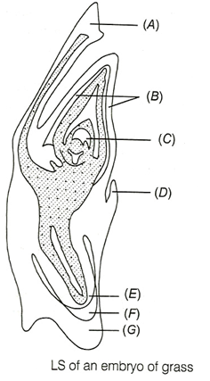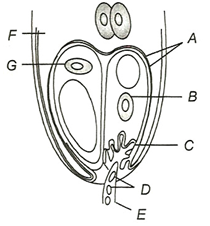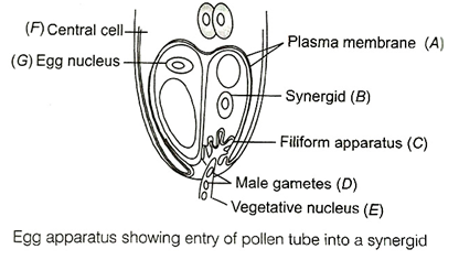 38.Diagram showing entry of pollen tube to the embryo sac. Identify A to G in the diagram