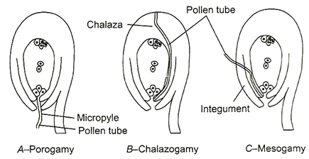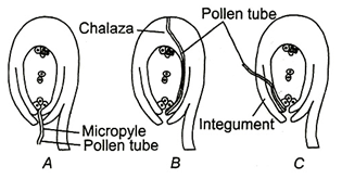 7.Identify the correct modes of entry of pollen tube in the diagrams given below