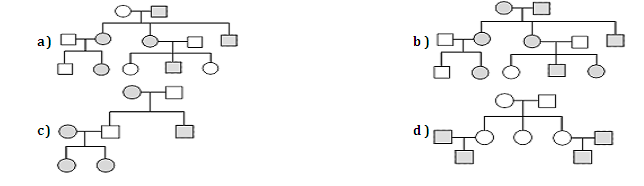 32.In a family father had a trait but mother did not. All their sons and daughter had this trait. The same trait was found in some grand daughters, through daughter were married to the normal persons. Choose the correct pedigree chart for the condition