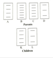 47.On the Basis of Given DNA Fingerprint, match their children’s (K and L) with their respective parent (A,B, C, D)