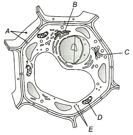 15.The following diagram shows some of the missing structures in a plant cell (A-E). Identify the structures