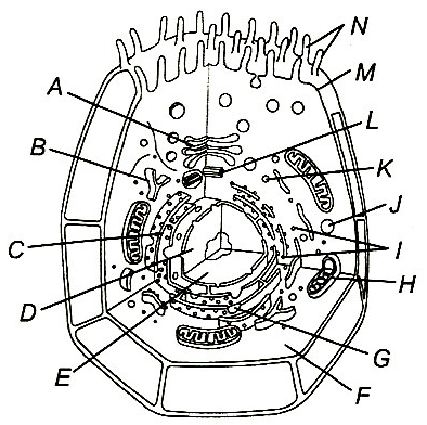 25.Correlate the given features of animal cells (I to VII) with their respective parts (A to N) I. The structure replicates during mitosis and generates the spindle II. Major site for synthesis of lipid III. Power house of the cell IV. store house of digestive enzyme V. Increase the surface are for the absorption of materials VI. Site of glycolysis VII. Site for active ribosomal RNA synthesis The correct option is