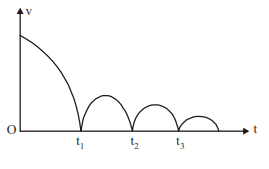 163.The graph (fig.) below describes the motion of a ball rebounding from a horizontal surface being released from a point above the surface. Assume the ball collides each time with the floor inelastically. The quantity represented on the y- axis is the ball's (take upward direction as positive)