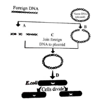 75.The flow chart given below represents the process of recombinant DNA technology. Identify A, B, C and D.