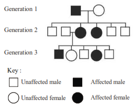 95.Given below is a pedigree chart showing the inheritance of a certain sex-linked trait in humans The trait traced in the above pedigree chart is